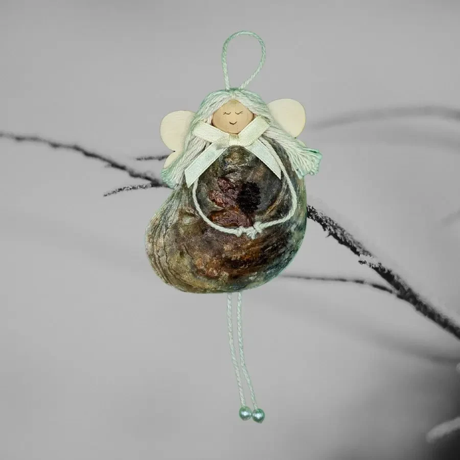 • Each angel and fairy is made by hand using natural and organic materials, including shells, wood, and cork, making them unique.